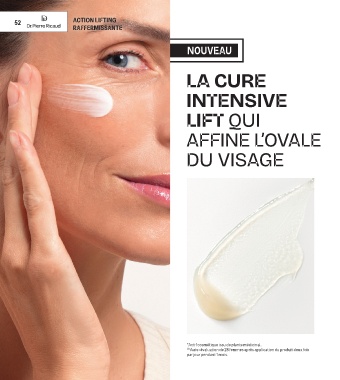 52 ACTION LIFTING 52 RAFFERMISSANTE NOUVEAU LA CURE INTENSIVE LIFT QUI AFFINE L’OVALE DU VISAGE *Actif cosmétique issu de plante médicinal. (1) Auto-évaluation de 28 femmes après application du produit deux fois par jour pendant 1 mois.