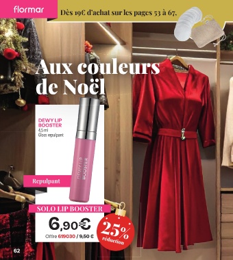 Dès 19€ d’achat sur les pages 53 à 67, Aux couleurs de Noël DEWY LIPWY LIP DE BOOSTER OSTER BO 4 4,5 ml,5 ml Gloss repulpant Repulpant SOLO LIP BOOSTERLO LIP BOOSTER SO 6,90€ 25% Offre 619030 / 9,50 € réduction 62